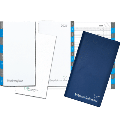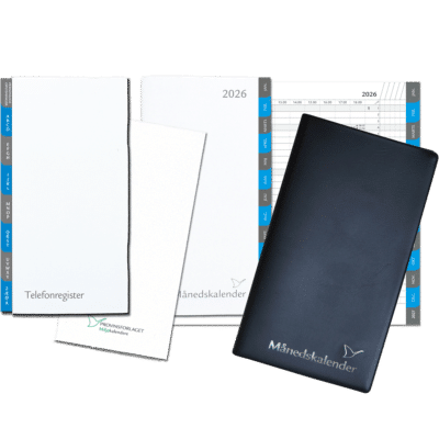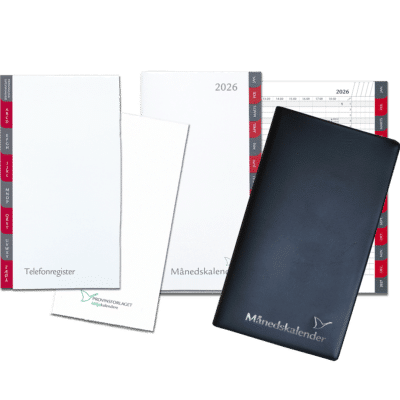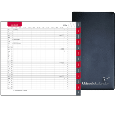 De månedskalenderne, som du finder her i Kalenderbutik.dk viser alle dagene for hver måned pr. omslag. Vi har mange forskellige designs og størrelser, så du kan finde den, der lige præcis passer til dig. For nogle af kalenderne er der mulighed for at skifte bladene ud ved årets udgang med vores refill, så du er klar når det nye år skyder i gang. Du finder også kalenderne, hvor du kan opbevare dine kreditkort så du har alt det praktiske lige ved hånden.