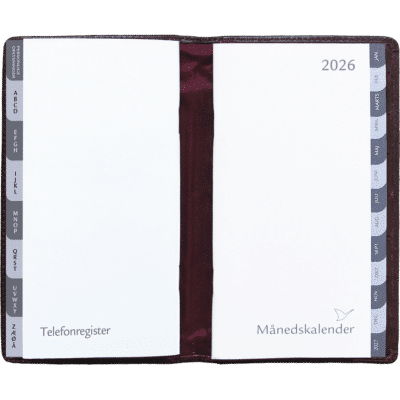 De månedskalenderne, som du finder her i Kalenderbutik.dk viser alle dagene for hver måned pr. omslag. Vi har mange forskellige designs og størrelser, så du kan finde den, der lige præcis passer til dig. For nogle af kalenderne er der mulighed for at skifte bladene ud ved årets udgang med vores refill, så du er klar når det nye år skyder i gang. Du finder også kalenderne, hvor du kan opbevare dine kreditkort så du har alt det praktiske lige ved hånden.