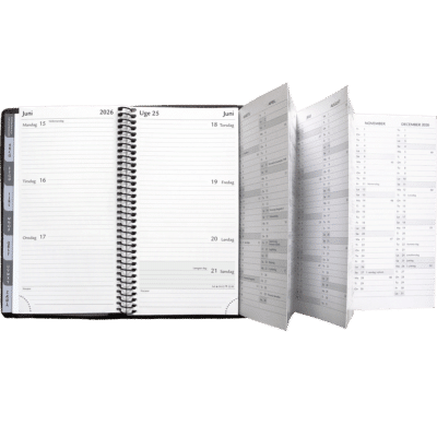 Vi har produceret kalendere i over 90 år og i vores sortiment finder du forskellige typer af den populære ugekalender. For nogle af vores kalendere er der mulighed for at have dit kreditkort, sygesikringsbevis og andre kort, som du skulle få brug for. Derved har du alt det praktiske inden for rækkevidde, når du er ude af huset. Her på siden kan du se vores udvalg af ugekalender og du finder altid alle kalendere på lager til hurtig levering, så du kan få overblik over dine aftaler.