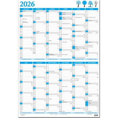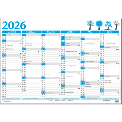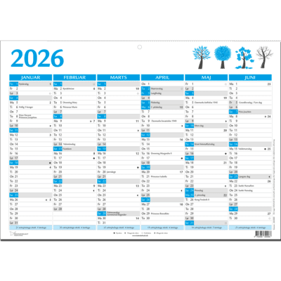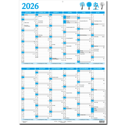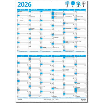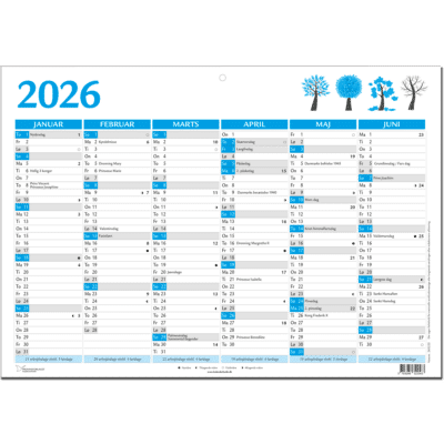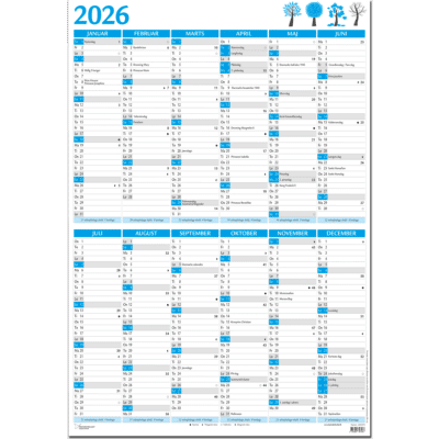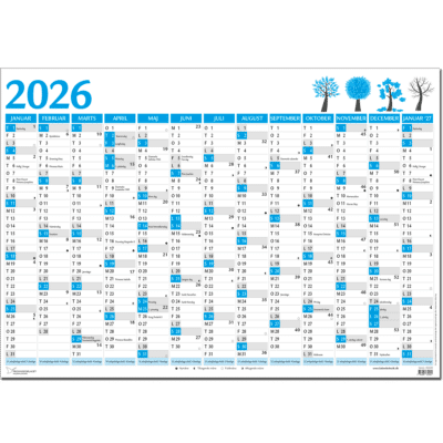 Med en vægkalender har alle i familien mulighed for at få et hurtigt overblik over hele familiens aktiviteter. Vores vægkalendere er både i en udgave med et halvt år på hver side og i en udgave med hele året samlet på en side. Her har du 2023 på den ene side og 2024 på den anden side. Begge typer af vægkalendere er selvfølgelig med alle årets helligdage, ugedage, andre vigtige dato informationer samt arbejdsdage hver måned. Derudover er der også angivet, hvor mange lørdage hver måned indeholder. Alt sammen informationer, som er med til at give et nemt overblik over hver måned, uge og dage på året i forhold til planlægning af aktiviteter, ferier og aftaler.