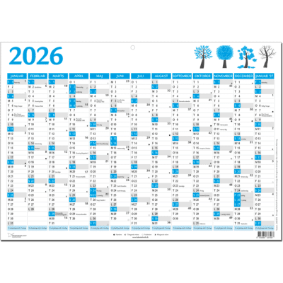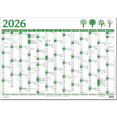 Vores vægkalendere kommer i flere forskellige udgaver og størrelser. Vi har den helt store udgave til at hænge på væggen og den lidt mindre, der kan stilles på skrivebordet på dit arbejde. Fælles for dem alle er, at du har mulighed for at skrive aftaler ind i kalenderen. Hvis du ønsker at have muligheden for at kunne fjerne noter igen, er det en god ide at vælge vores vægkalender i whiteboardudgaven. Her kan du skrive dine aftaler med en whiteboard pen, som kan fjernes igen med en klud.