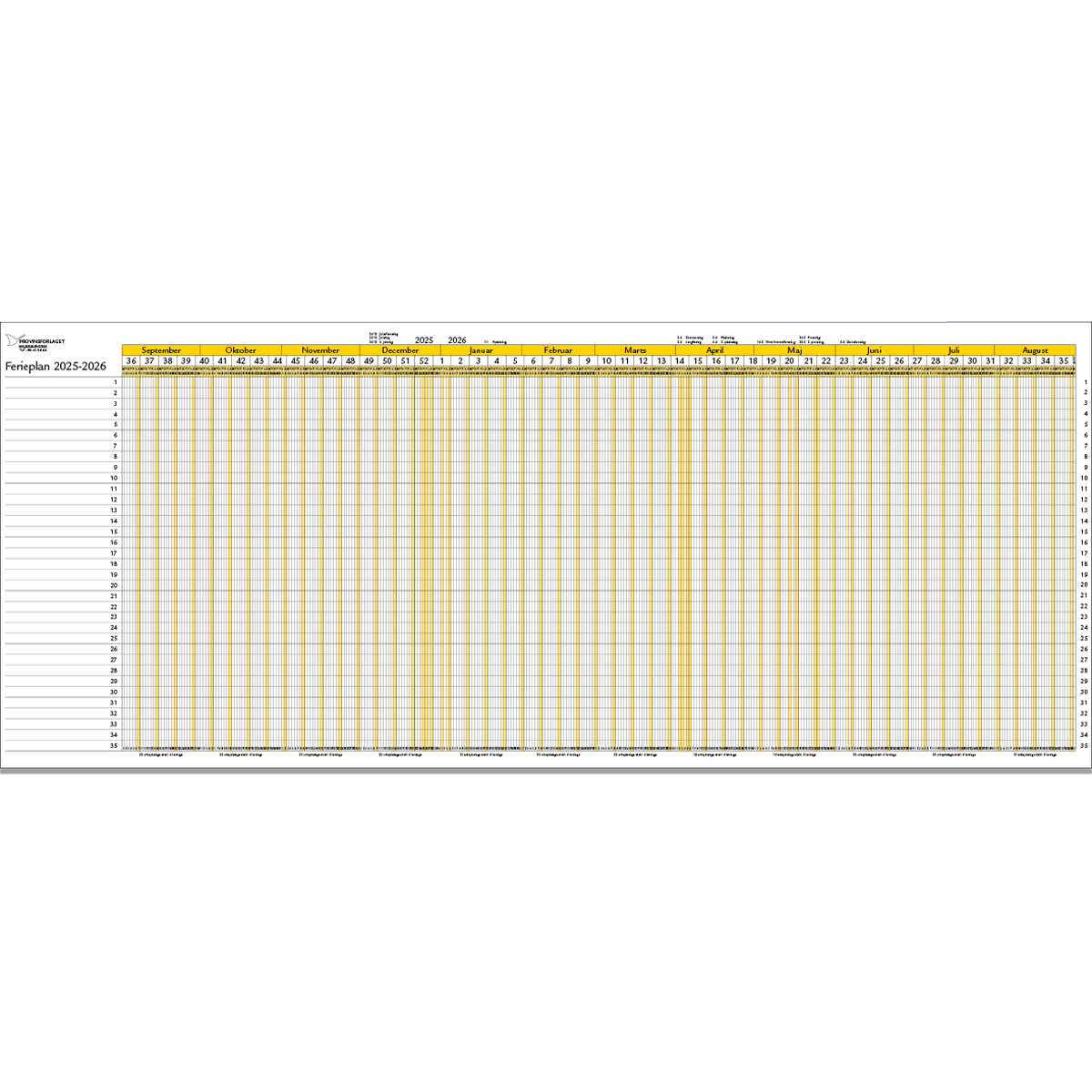 4-fløjet ferieplan, følger ferieåret fra 1. september til 31. august. Velegnet til at hænge op, men passer også til A4 ringbind. Uundværlig i forbindelse med ferieplanlægningen. Format: A4 – 4 -fløjet. 71,5 x 29,7 cm.
