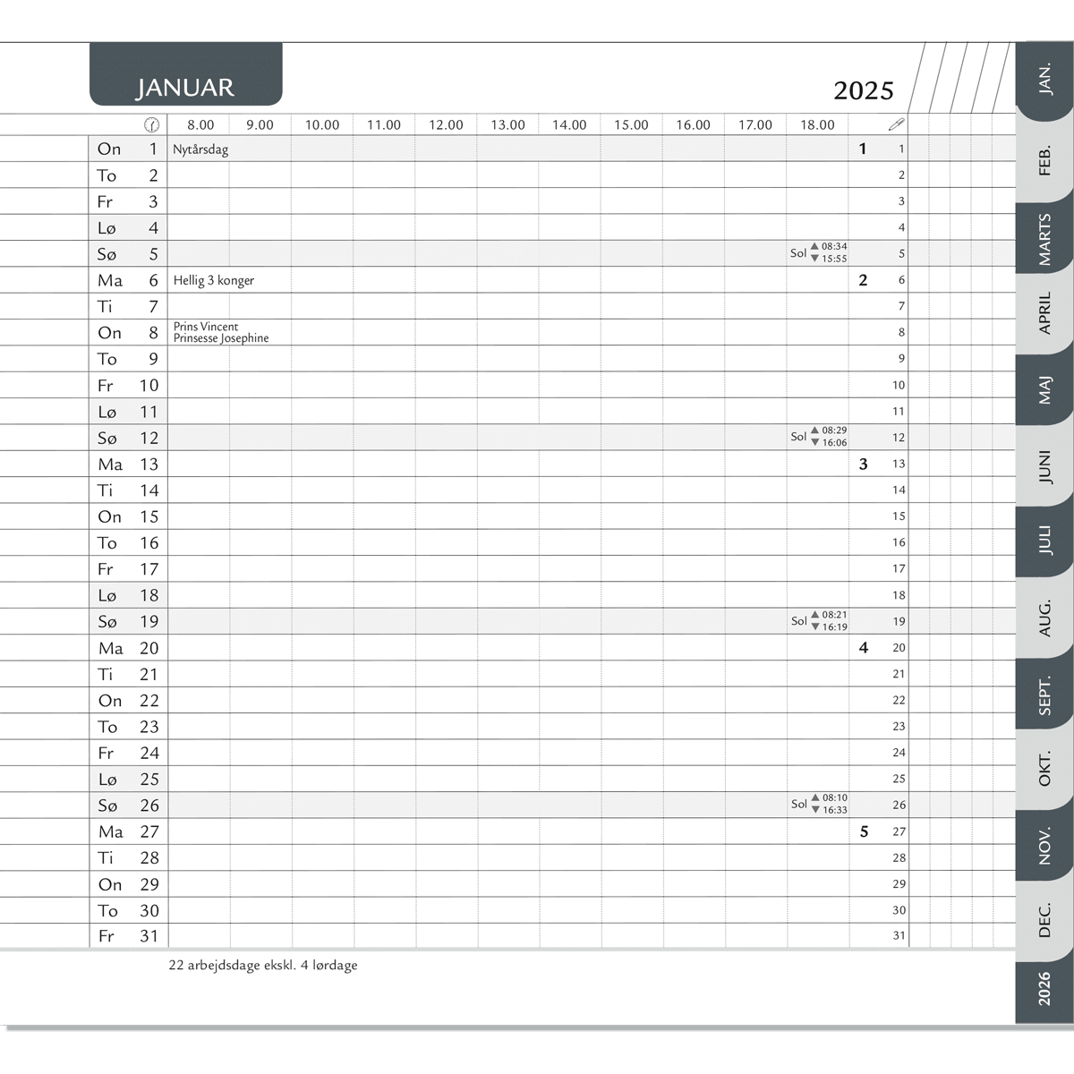 Månedskalender 2025 grå/grå faner, refill