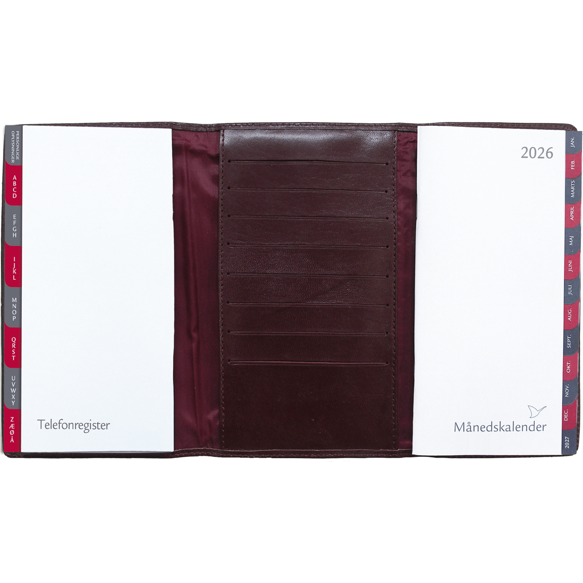 Som et ekstra tillæg er der i kalenderen både telefonregister, som er inddelt efter alfabetet samt notesblok til at skrive notater.