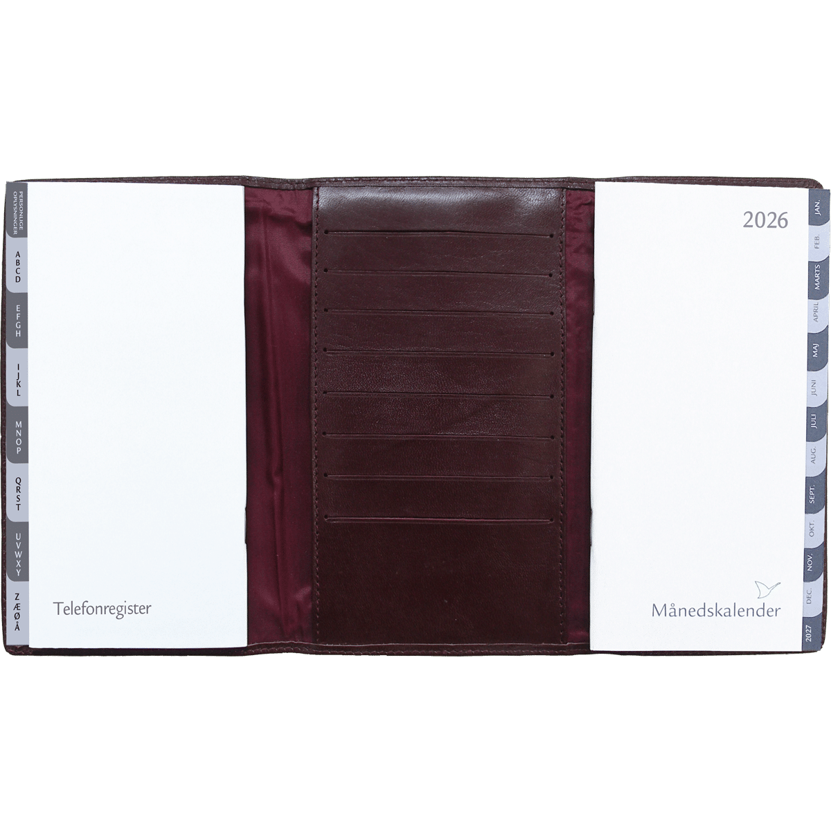 Som et ekstra tillæg er der i kalenderen både telefonregister, som er inddelt efter alfabetet samt notesblok til at skrive notater.