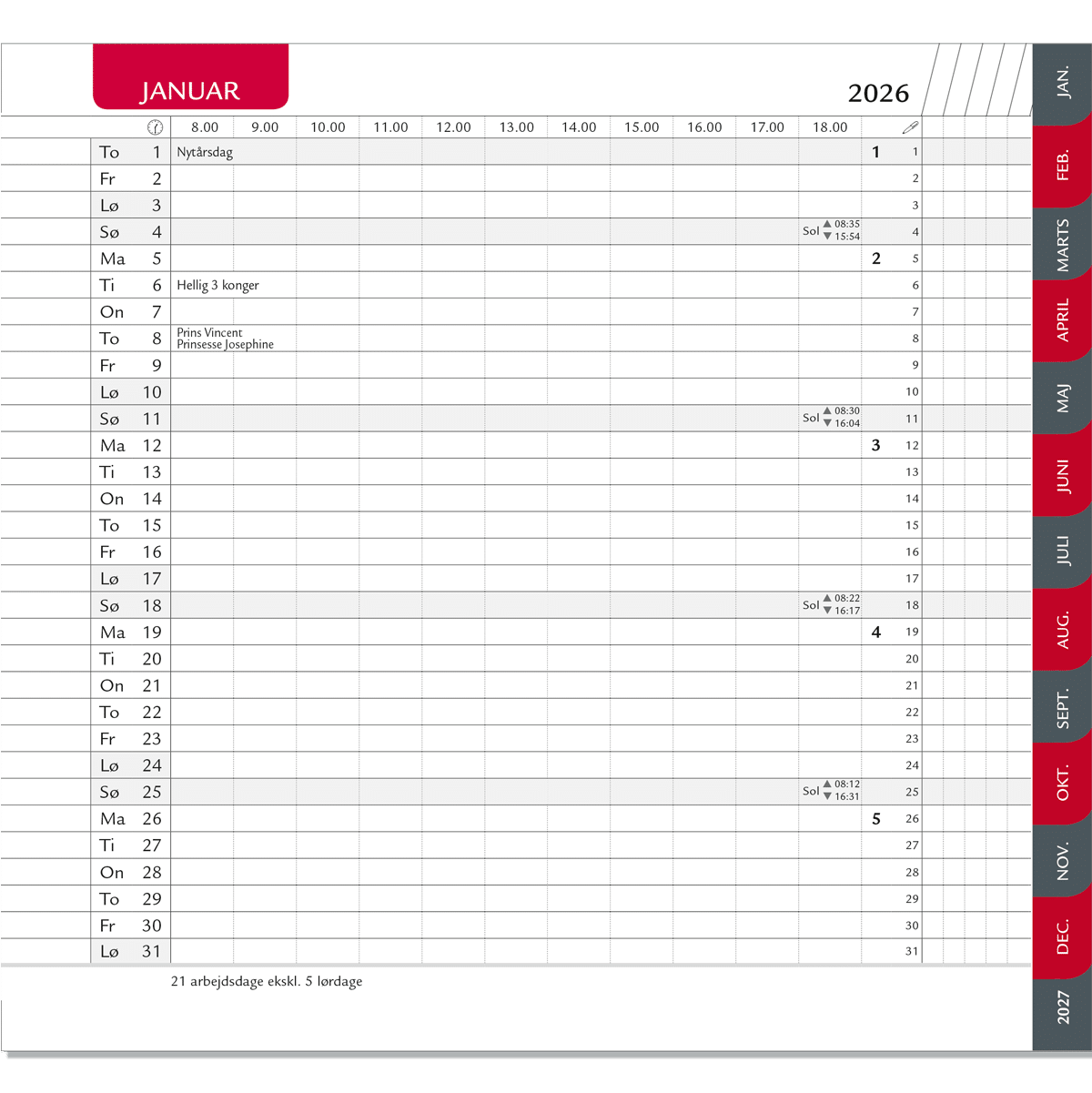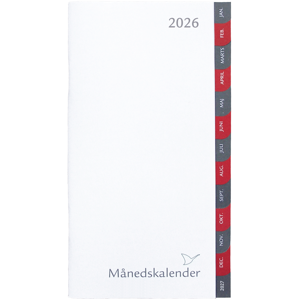 Månedskalender 2026 rød/grå faner, refill