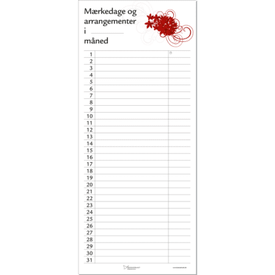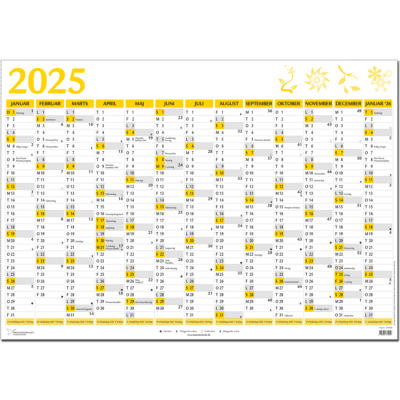 13 måneders semesterkalender i whiteboard, det er muligt at bruge whiteboard pen, der kan fjernes med en klud.